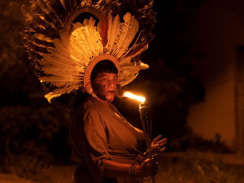 In Antigone in the Amazon begehrt eine indigene Antigone in einem dramatischen Abend gegen Kreons staatlich organisierte Tyrannei auf – ein Protest gegen die Macht des neokolonialen Kapitals: In Brasilien, wo vor 500 Jahren mit der Kolonialisierung die grosse Katastrophe begann und wo etwa 10 Prozent der Bevölkerung 80 Prozent des Bodens besitzen, setzt sich die Landlosenbewegung (MST) für eine radikale Landreform ein. Auf der mit staubiger Erde bedeckten Bühne bleibt daher wenig an zurückhaltenden Schauspiel übrig. Von der Leinwand agieren die Aktivist*innen der Landlosen als Chor und kommentieren das Bühnengeschehen zwischen Kreon, Antigone, ihrem Verlobten Haimon und dessen Mutter Eurydike: Gewalt, Mord, Selbstmord und ein Reenactment des erschütternden Massakers von 1996 werden - wie im antiken Theater - Teil einer Traumabewältigung.