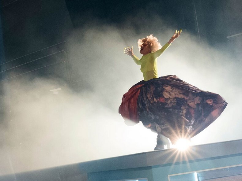 Der Doppelabend der Schweizer Regisseurin Claudia Bossard kombiniert in einer zeitgenössischen Umsetzung Elfriede Jelineks „In den Alpen“ mit der Uraufführung des exklusiv für das Volkstheater verfassten Stückes, „Après les Alpes“, des in Graz lebenden Autors und Dramatikers Fiston Mwanza Mujila.