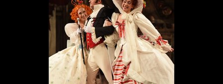 Lydia Steier hat also in ihrer Inszenierung für die Deutsche Oper am Rhein den Handlungsort der Oper "Pique Dame" von Peter Iljitsch Tschaikowsky von St. Petersburg nach Hollywood verlegt, was im Großen und Ganzen auch trägt. Die kleinen Kadetten aus dem Kinderchor treten daher auch als Indianer und Cowboys verkleidet auf. Die ursprünglich angedachte Handlungszeit des späten Rokoko wird in einem venezianischen Kostümfest zitiert. Bei der Ausstattung wird groß aufgefahren (Bühnenbild von Bärbl Hohmann und Kostüme von Ursula Kudrna), so dass der Zuschauer in opulenten Bildern schwelgen kann. Es ist aber nicht nur ein untrügliches Gespür für visuelle Effekte, mit dem Steier aufwarten kann, sondern auch ein feiner Sinn für Gesten und Mimik, welche die Handlungen tragen und plausibel erscheinen lassen. So wirken die Charaktere - allen voran Sergey Polyakov als Hermann, Elisabet Strid als Lisa, Hanna Schwarz als Gräfin - nicht nur stimmlich, sondern auch darstellerisch überzeugend. Was das Publikum mit langanhaltendem Beifall belohnte. Absolut sehenswert!