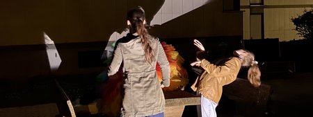 Mit SPIN (Seite öffnet in separatem Fenster), einem Interactive Dance Rave für alle von der australischen Tänzerin Anna Seymour, untersuchen drei gehörlose Gastgeber*innen und ein DJ spielerisch, wer bei Raves dazugehören und koexistieren kann, und stellt die Annahme in Frage, dass gehörlose Menschen nicht in diese Räume gehören. Für Familien gibt es die Performance exklusiv als Mini-Ausgabe.