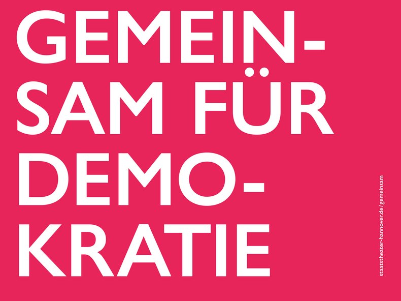 Dieser Verantwortung geben nun rund 50 Kultureinrichtungen in Hannover ein gemeinsames Gesicht. Mit den Slogans „Gemeinsam für Demokratie“ und „Zusammen gegen den Hass“ sind ab dem 12. Februar in Hannovers Innenstadt Plakate und Banner zu entdecken. Sie sollen sichtbar machen, dass Hannovers vielfältige und lebendige Kulturlandschaft ein verlässliches Rückgrat der Demokratie ist.