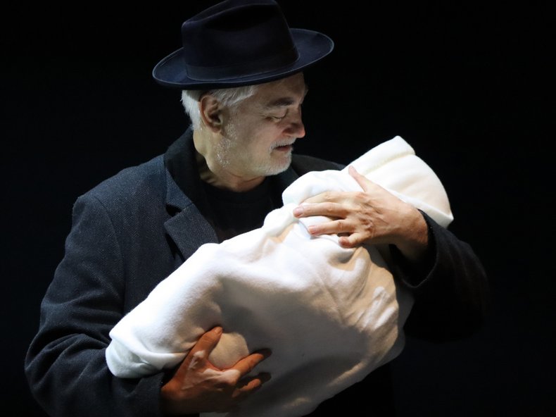 Im Roman „Hiob“ wird dieses Gefühl der Fremdheit sehr klar durchleuchtet. Mendel Singer fühlt sich fremd in Amerika, aber auch fremd in sich und von seiner Familie entfremdet. Das behinderte Kind erscheint ihm sehr fremd, und nach und nach verliert er alles, was ihm vorher Sicherheit gegeben hat: sogar seinen Glauben.“ Diese Fremdheit bringen Tanja Weidner und Ausstatterin Annette Wolf auf ungewöhnliche Weise auf die Bühne des WBT: Der jüngste Sohn Menuchim wird als Figur zum Leben erweckt, die vom Ensemble abwechselnd geführt wird. Catharina Volbers und Yuanjia Teng vom Gymnasium Paulinum verleihen ihr mit ihrer Klarinette eine Stimme.