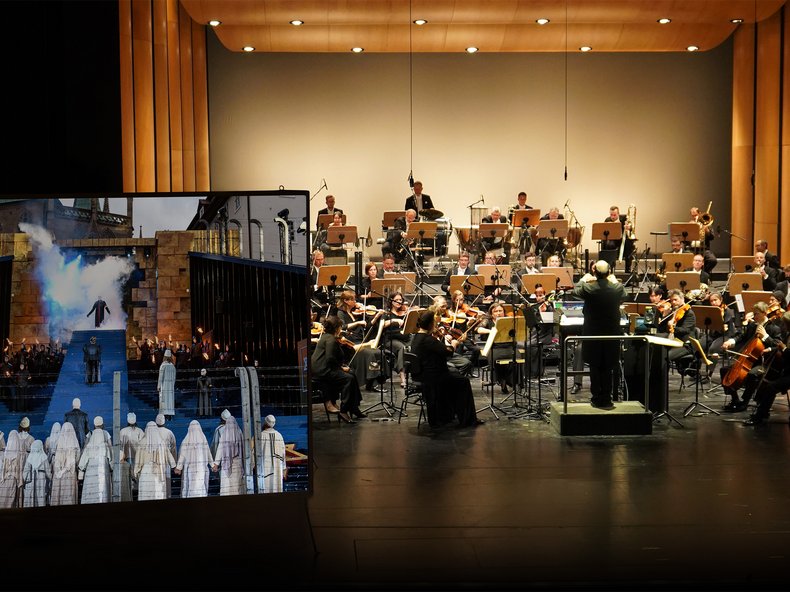Nachdem im vergangenen Jahr das Orchester erstmalig via Glasfaserkabel aus dem Theater auf das Domstufenareal übertragen wurde, gibt es in diesem Jahr eine weitere Neuerung: Besucherinnen und Besucher können einige der Vorstellungen erstmals auch im Großen Haus des Theaters erleben. Zu sehen und zu hören ist das Philharmonische Orchester live auf der Bühne. Das Bühnengeschehen auf dem Domplatz wird auf einer Leinwand übertragen.