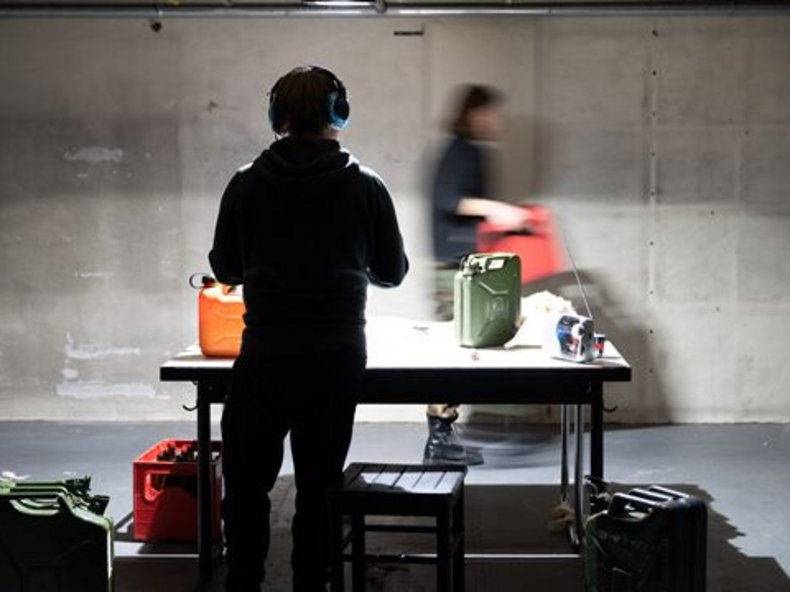 Erschreckende und grauenvolle Bilder kann man aber nur erahnen, trotzdem bleibt immer wieder das Gefühl konstanter Bedrohung. Außerdem ist mit dem Kopfhörer auch Sirenengeheul zu hören. Die Zuschauer sind zunächst außerhalb des Theaters im großen Park vor dem Staatstheater unterwegs, um dann in ein großes Parkhaus hinabzutauchen. Eine interessante Idee, denn sie werden von der Schauspielerin Gabriele Hintermaier angeleitet. Die Kriegswirklichkeit holt den Zuschauer wiederholt ein, lässt ihn nicht mehr los. Die Berichte aus ukrainischen Städten vermischen sich hier in beklemmender Weise mit den Erzählungen verzweifelter Menschen, die ihre Heimat verlassen mussten.