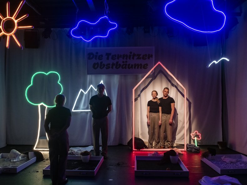 Die junge Dramatikerin Teresa Dopler verwebt in ihrem Stück unterschiedliche Stimmen und Perspektiven zu einem vielschichtigen Bild, in dem die Weite der Welt und die Enge einer ländlichen Idylle aufeinanderprallen.