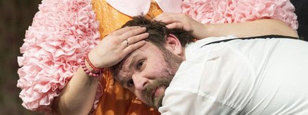 In einem Prozess zwischen digitalem Infotainment und Demokratiespiel reflektieren die Zuschauer*innen ihr ambivalentes Verhältnis zum Schwein. Da betreten zwei analoge Rampensäue die moralische Anstalt. Die Schauspieler*innen grüßen herzlich von Dionysos, auf dessen rauschenden Partys einst Tiere zerrissen und gegessen wurden.