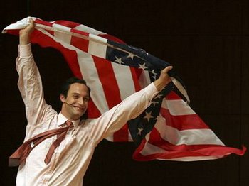 Und da wir in Sachen Europa natürlich alle keine Anfänger mehr sein wollen und zu wissen glauben, worum es geht, ist dies alles schon Zwerchfell erschütternd genug. Richtig spannend wird die Sache, als sich mit der Figur eines alerten, tanz- und sangesfreudigen Türken tatsächlich ein Neuankömmling einstellt, der der vermufft abgeschotteten Gemeinschaft so richtig den Angstschweiß auf die Stirn und den Rhythmus ins Blut treibt. Wahrhaft atemberaubend gestaltet sich das Ganze, als in Gestalt einer erblondeten Condoleezza Rice urplötzlich eine Weltpolizeidomina die Szene betritt, um den Anwesenden handgreiflich zu demonstrieren, was es mit der Pax americana (oder deren Gegenteil) auf sich hat. So muss erst (Theater-)Blut fließen, bevor sich bei zusammengebissenen Zähnen jene Harmonie einstellt, die der Produktion dann ihren hymnisch Beifall heischenden Ausklang sichert.