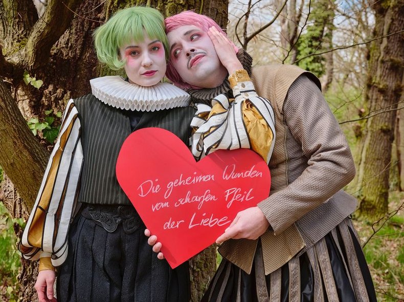 Zu diesem Paar gesellen sich dann noch ein amourös interessierter Narr, hormonbefeuerte Schäfer*innen sowie weitere Verliebte und melancholische Träumer – und das Karussell der entflammten Herzen dreht sich immer schneller. So kommt es im Wald von Arden zu einem hochkomischen Crescendo der Emotionen zwischen Euphorie und Melancholie, einem schwindelerregenden Spiel mit Geschlechterrollen und Grenzüberschreitungen – voller Poesie, Witz, Zauber und Musik.